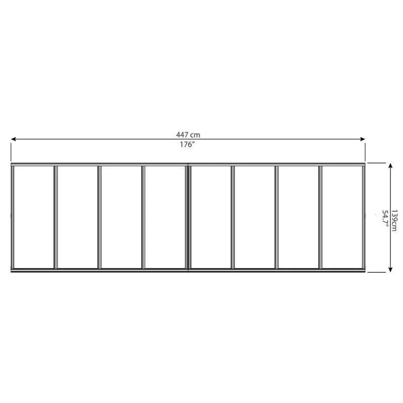L’auvent pour porte d’entrée ou terrasse ™ 4460 de Canopia by Palram se compose de deux modules unis par un kit de connecteurs, lui permettant de couvrir une belle surface de 446cm de longueur avec un débord de 139cm.