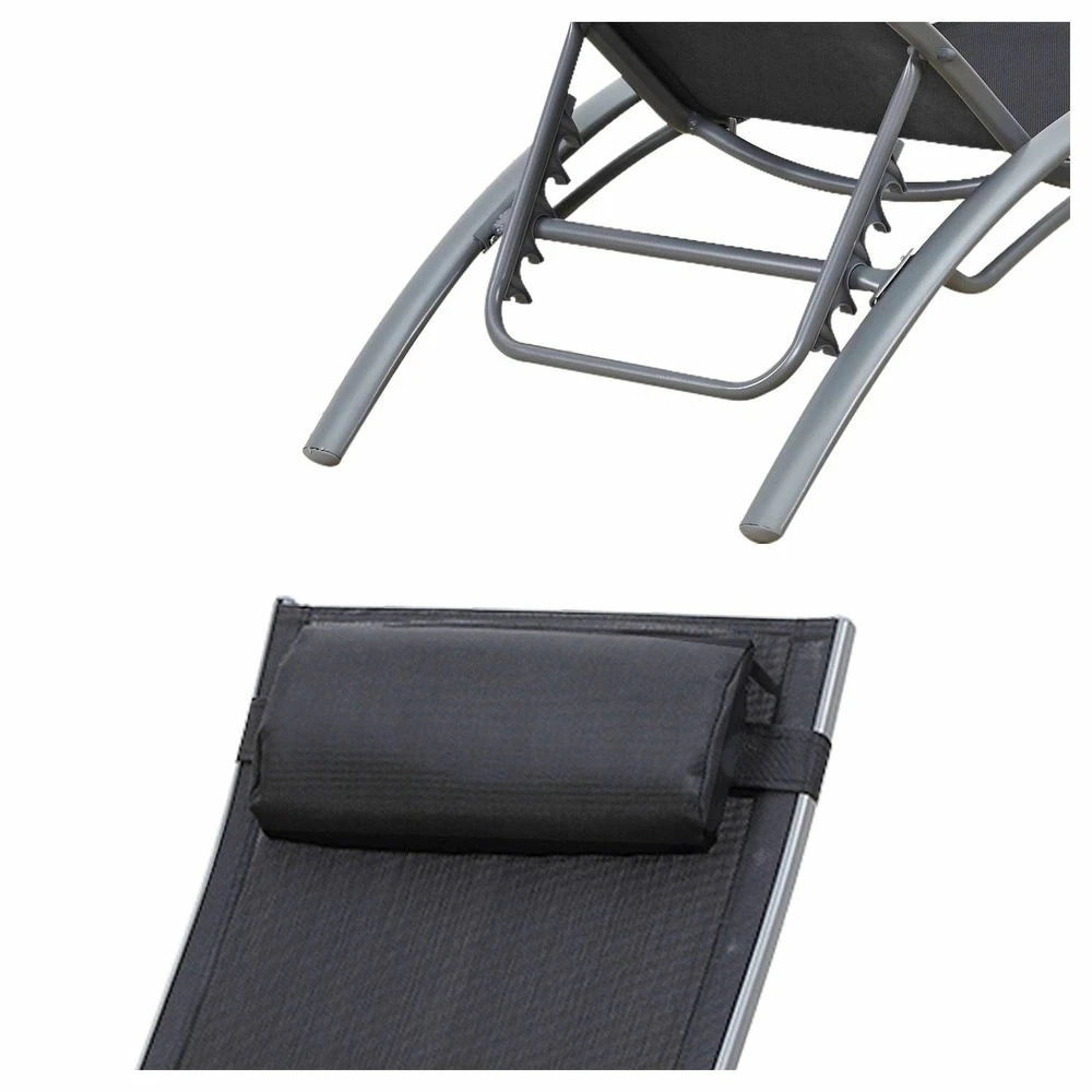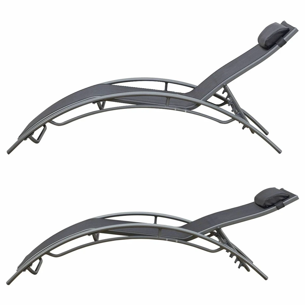 sa structure courbée associée au revêtement en textilène épouse la forme du corps pour une assise encore plus confortable. Finalisez l’ajustement de votre position grâce au coussin de tête.