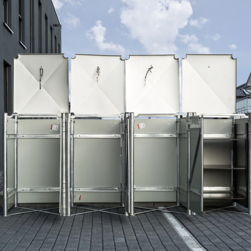Avec ses 4 compartiments, le cache-poubelle Hide vous permettra de pratiquer un tri sélectif en un simple geste. Réalisé avec des matériaux de première qualité, ce cache-poubelle accueille 4 conteneurs à déchets d’un volume de 140L chacun. Le cadre est en acier galvanisé à chaud et les parois sont réalisées en aluminium composite, pour une durabilité et une solidité inégalées.