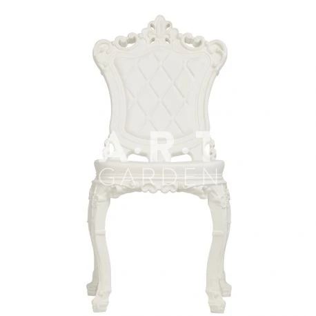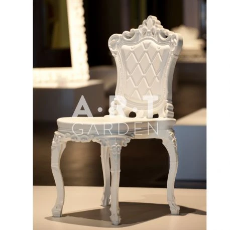 Parfaite pour décorer des espaces modernes aussi bien intérieurs qu’extérieurs, la chaise Princess of love possède la fameuse « fleur de Lys », présente à l’arrière du dossier et en haut de la chaise, véritable signature des 2 designers.