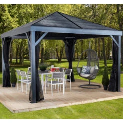 Conçue pour supporter sans dommage les intempéries, les rayons UV et la corrosion, la pergola Apolo est fabriquée en aluminium. Matériau léger, il facilite le montage. Les poteaux sont de 160x160mm et assurent une stabilité optimale. La couleur gris anthracite de la structure apporte une touche indémodable dans votre jardin.