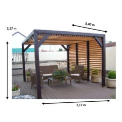 Pergola En Bois Avec Ventelles Amovibles Sur Toiture + 1 Côté 340x312x217cm Veneto