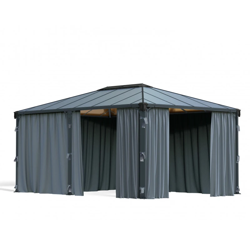 Offrez vous cet accessoire qui vous rendra bien service en cas de pluie, de vent ou si vous souhaitez fermer toute ou partie de votre pergola. Ce sont des rideaux de haute qualité gris, qui s’accordent donc parfaitement avec votre pergola Palram.