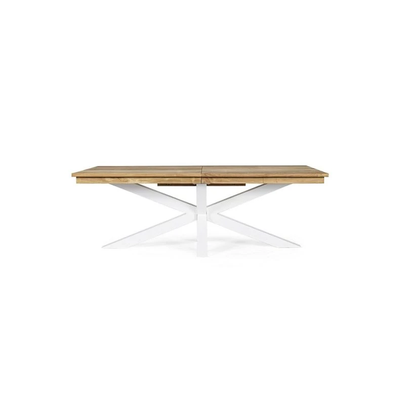 Déjeunez en plein air grâce à la table d’extérieur Palmdale blanc de Bizzotto. Extensible pour s’adapter à votre tablée, cette table avec plateau en teck de classe A est aussi jolie que pratique. Son pied travaillé, en aluminium peint en blanc apporte une touche scandinave à votre terrasse. Quant à son plateau en teck massif, il est labellisé SVLK. Ainsi, aucun doute sur l’origine de ce bois, il est issu de forêts gérées durablement.