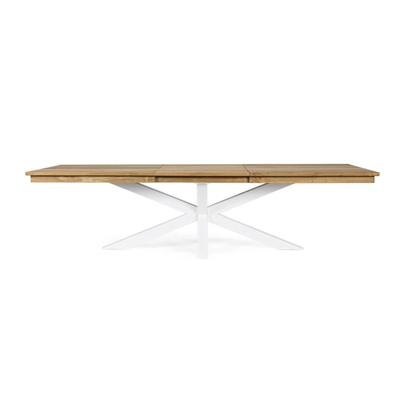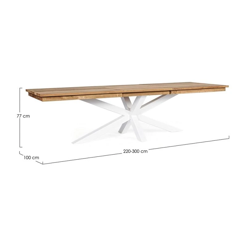 Sublime table de jardin extensible par Bizzotto. En teck et aluminium, cette table de repas d’exception accueille jusqu’à 12 convives.