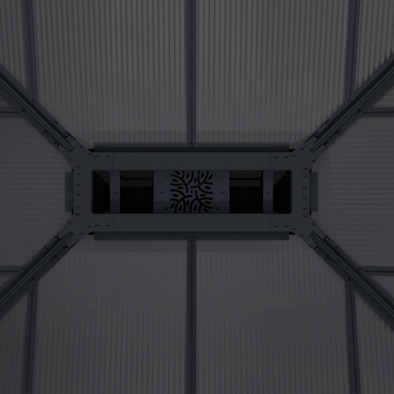 Robuste, la construction de cette tonnelle de jardin Dallas de Canopia by Palram est réalisée en aluminium avec connecteurs en acier galvanisé découpés au laser pour une stabilité idéale. Le revêtement en poudre anthracite est très efficace contre la rouille et apporte une note tendance dans votre extérieur.