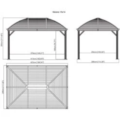 La gouttière est fournie avec des embouts sur lesquels peuvent se raccorder des descentes d’eau pluviale. D’une longueur de 400cm pour une largeur de près de 300cm, la particularité de cette véranda est de permettre d’ajuster sa hauteur faîtière, qui peut être réglée entre 285 et 310cm.